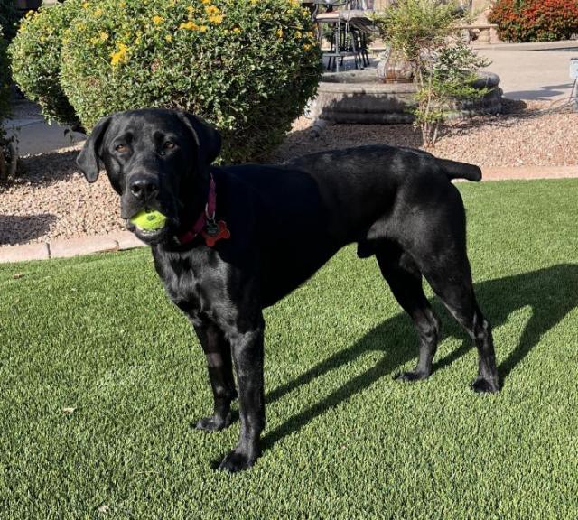 Jack is a very energetic and fun dog that loves to chase balls and be around his people. He is a neutered 3 year old Black Lab mixed with a pointer breed. He weighs in at a mere 63 pounds but it is all muscle! Jack is very smart, loving, and loyal. His favorite thing to do is to chase balls into the pool and he’ll bring it right back for another throw. Even when he is very excited to play ball, he has learned to stay on command and only retrieve it when released. Once playtime is complete Jack settles into his engaging and calm personality.