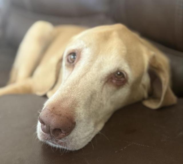 Oh boy…..Boy is right!! Kenta is a nine-year-old, male, yellow lab weighing in at almost 115 pounds. His name is of Japanese origin and is often associated with meanings like “healthy, strong” and “big, large.” Very appropriate for this boy!!!