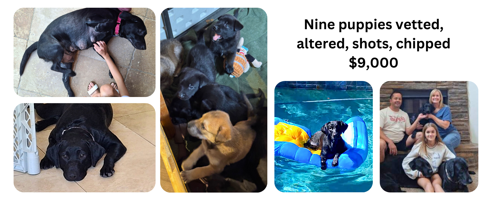 Thanks to your donations, Hope and her puppies received the care they desperately needed. DLRR kept the puppies with their mom until they were eight weeks old, ensuring they developed properly. Once ready, the puppies were vaccinated, altered, and microchipped before being adopted into loving homes.