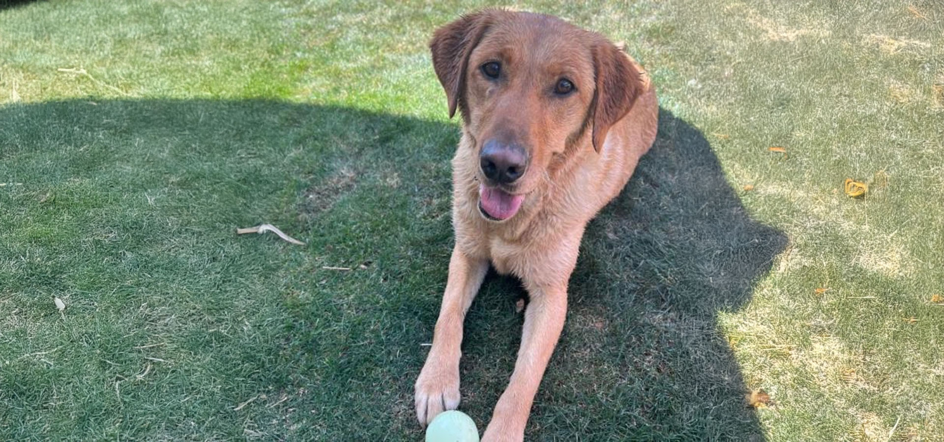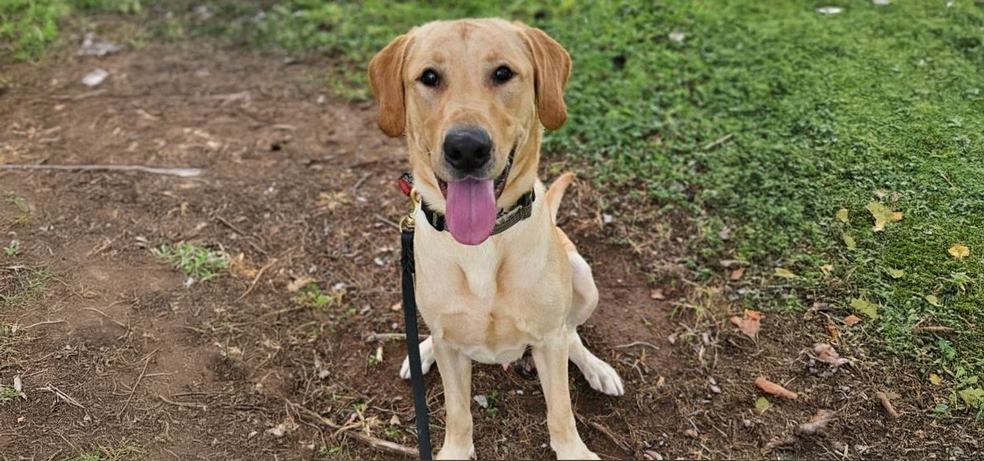 Foster is a one-and-a-half-year-old yellow Lab with a heart as big as his paws! This handsome, large goofball loves car rides, belly rubs, and snuggling up after a day of fun. He’s always up for an adventure, whether it’s hiking a new trail, tagging along to the barn, or just exploring the neighborhood.